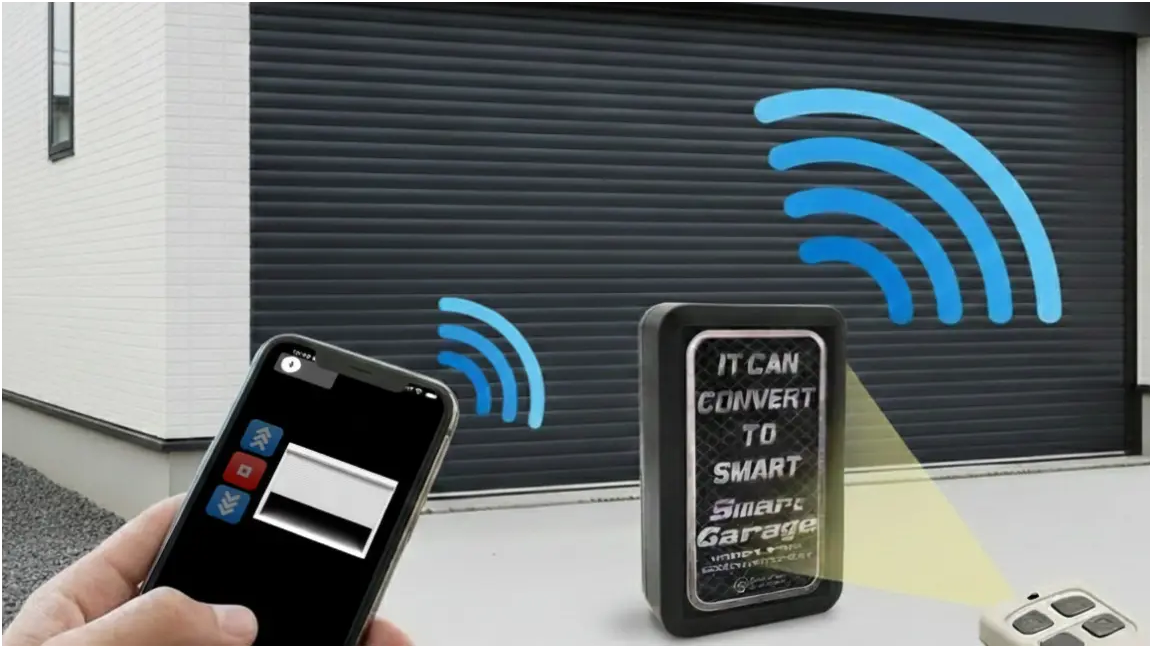 ワイヤレスコンバーターは、既存のシャッターリモコンの微弱な電波をワイアレスコンバーター側で学習しスマートフォンのアプリから